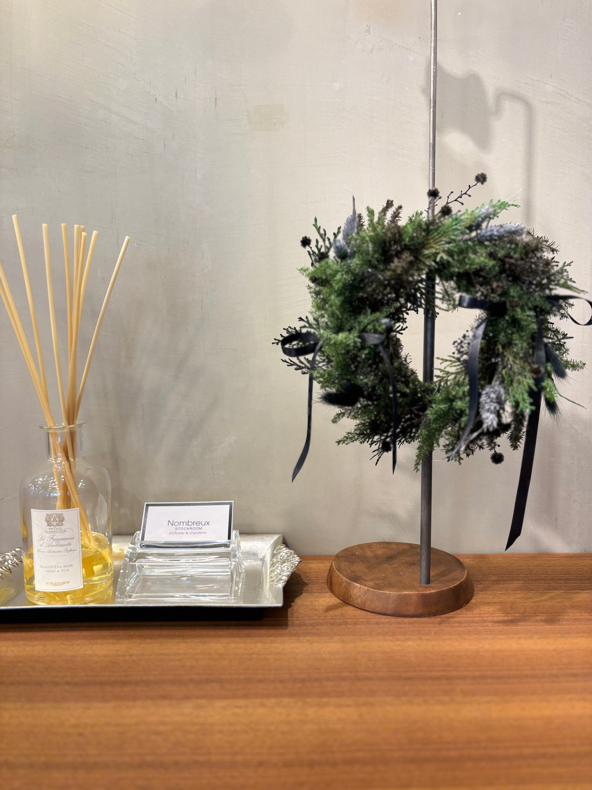 冬の空気にやわらかな彩りを添えるリース